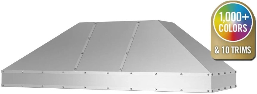 Metals & Strapping: Change your hood material from stainless steel to 14 different custom metals options including brass and copper. Plus, enhance your ventilation hood design by adding custom strapping and rivets to compliment other finishes in your kitchen.