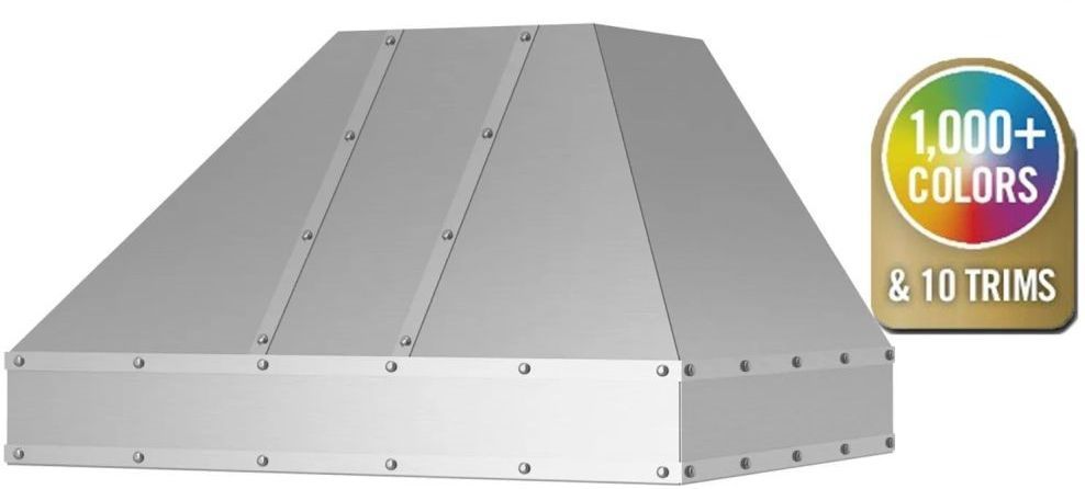 Metals & Strapping: Change your hood material from stainless steel to 14 different custom metals options including brass and copper. Plus, enhance your ventilation hood design by adding custom strapping and rivets to compliment other finishes in your kitchen.
