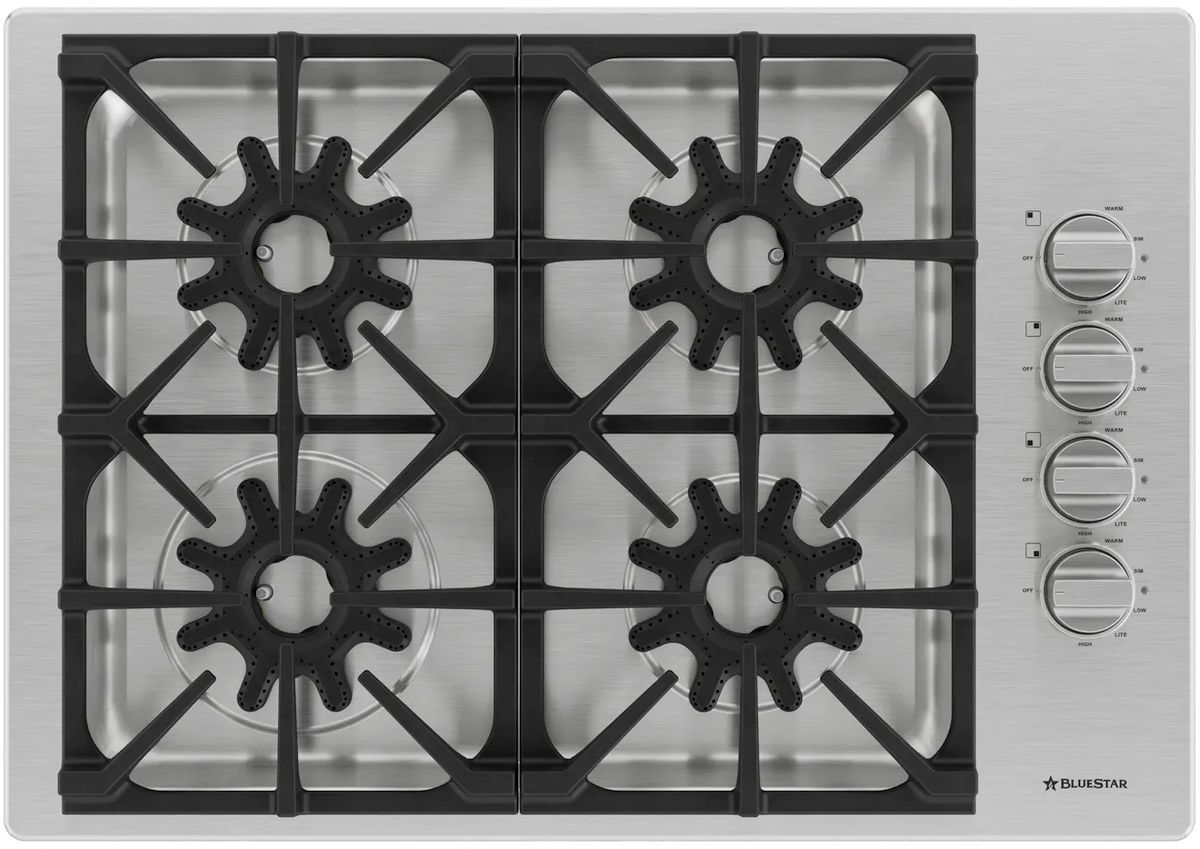 The industry's most powerful gas cooktops are here – engineered for unrivaled cooking performance and maximum versatility. Cook with confidence on a spacious 30" surface featuring 4 burners that deliver an impressive 67,000 BTUs of power. BlueStar's exclusive X-8™ star-shaped sealed burner offers unmatched versatility and control on EVERY burner. A 25,000 BTU burner, plus 14,000 BTU burners, all go down to 500 BTUs. *IMAGE MAY NOT REFLECT FINAL PRODUCT*Read More
